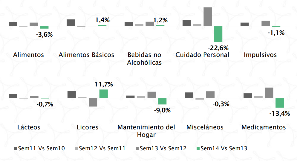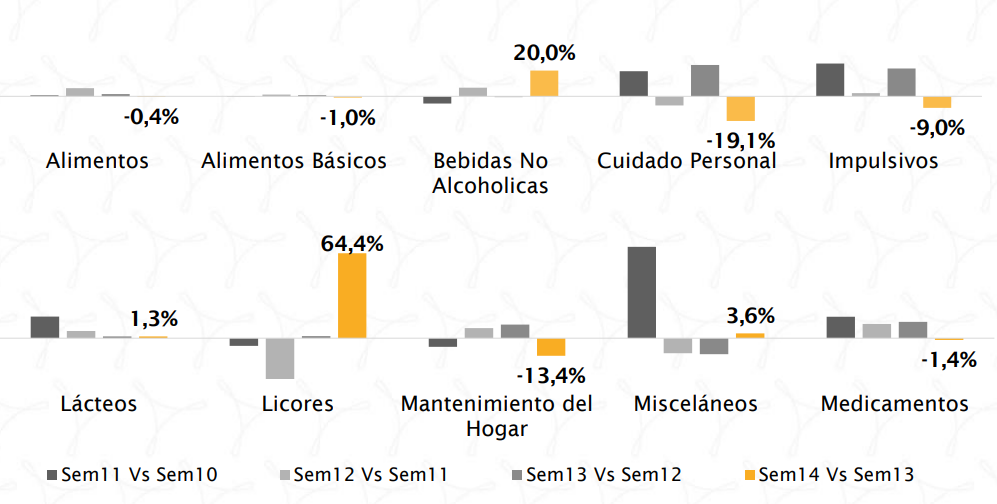 La cesta con mayor crecimiento en unidades para la última semana fue licores (+53%) por su parte la cesta con mayor contracción fue cuidado personal (-20%).