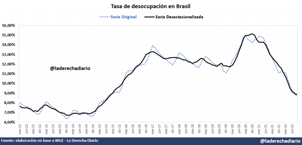 Las series estadísticas de la autoridad monetaria brasileña parecen dar la espalda al candidato socialista, ya que hacia agosto de 2022 se llegó a registrar el mayor nivel de ingresos reales pagados a los trabajadores desde el año 2019.