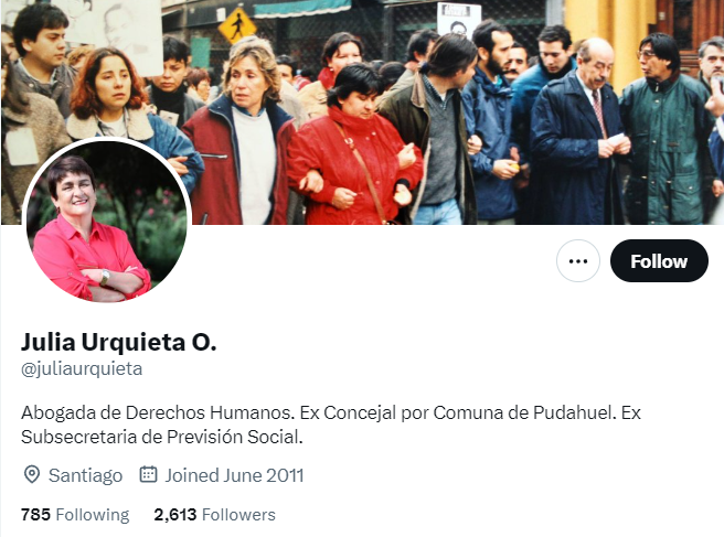 Abogada de la Universidad de Chile, Julia Urquieta tiene interés por los Derechos Humanos. En su trayectoria laboral ha sido concejal de Pudahuel y bajo el segundo gobierno de Michelle Bachelet fue subsecretaria de Previsión Social.