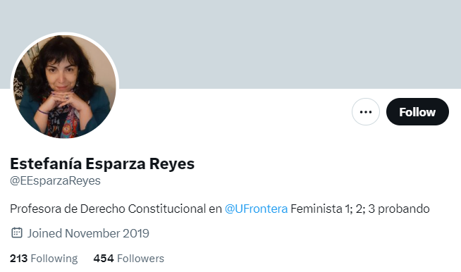 Abogada de la Universidad Católica de Temuco, Estefanía Esparza es doctora en Derecho Constitucional de la Universidad de Castilla-La Mancha y actualmente enseña sobre esa disciplina en la Universidad de La Frontera.