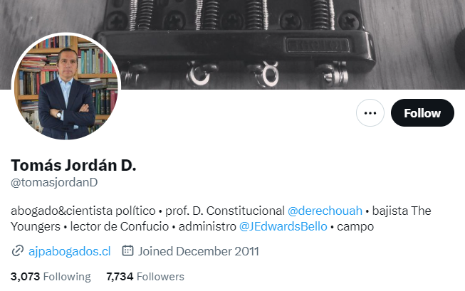 Abogado de la Universidad de Chile, con un magíster en Ciencia Política de la misma casa de estudios y otro en Derecho Público en la Universitat Autónoma de Barcelona, Tomás Jordán fue consultor del Congreso para la reforma por el primer proceso constituyente y entre 2014 a 2018 también asesoró a la Segpres de Michelle Bachelet por la reforma política y de nueva Constitución, que el segundo gobierno de Sebastian Piñera sepulto.