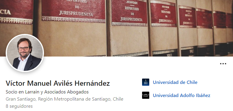 Abogado de la Universidad de Chile con un diplomado en reforma tributaria de la Universidad Adolfo Ibáñez, Víctor Manuel Avilés es profesor asociado de Derecho Constitucional en la Casa de Bello y hoy es socio en el estudio Larraín y Asociados.