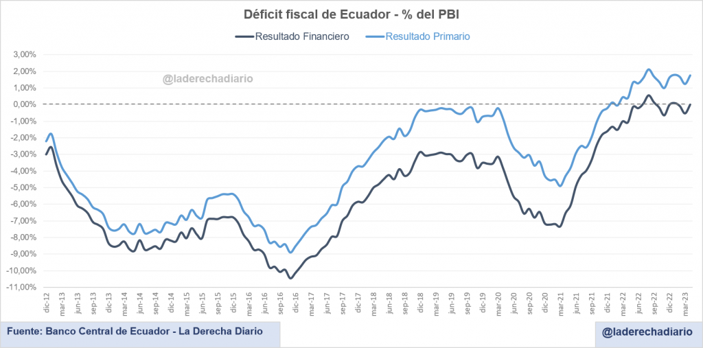Cabe destacar que cuando Lasso asumió la presidencia en mayo de 2021 el déficit primario del sector público alcanzaba el 3,8% del PBI, y el resultado financiero marcaba un rojo de hasta 6 puntos del producto. La reforma tributaria de 2022 disparó los niveles de la recaudación, al mismo tiempo en que el Gobierno administró con cautela el gasto público.