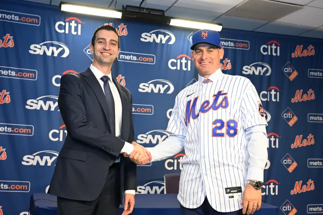 El venezolanoo Carlos Mendoza fue presentado por el presidente de operaciones de béisbol del equipo David Stearns. Foto X (antes Twitter) @Mets