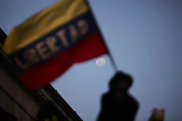 La luna se ve detrás de un hombre disfrazado de El Zorro y ondeando una bandera venezolana que dice “Libertad” durante una protesta convocada por la oposición venezolana para que se reconozca la “victoria” electoral en la Plaza de las Naciones Unidas, cerca de la escultura Floralis Genérica, en Buenos Aires el 17 de agosto de 2024. – La líder de la oposición venezolana, María Corina Machado, había convocado concentraciones masivas en más de 300 ciudades de Venezuela y el extranjero para intensificar la presión sobre Maduro para que admita lo que ella dice fue una abrumadora victoria de la oposición en las elecciones presidenciales del 28 de julio. (Foto de Emiliano Lasalvia / AFP)