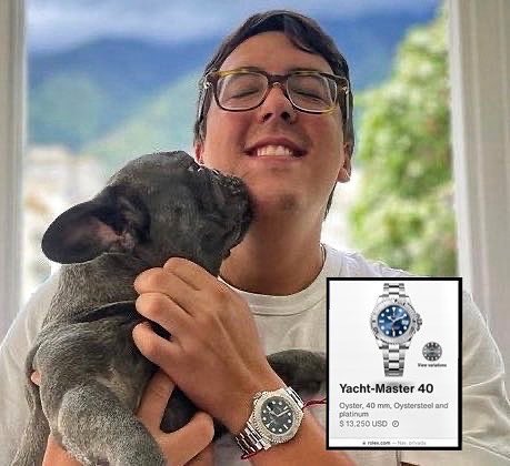 Posteriormente, el influencer destacó que «Mientras que los hijos de María pasan roncha buscando mejoras en cualquier parte del mundo» evocando a los hijos de cualquiera madre venezolana víctimas del desplazamiento forzado por el régimen socialista del país caribeño, «el hijo de Jorge Rodríguez exhibe las menudencia que le permite la revolución. De tal palo, tal astilla» remató junto a otra fotografía de Juan Pedro Rodríguez hijo del chavista sancionado desde el 2018. luciendo nada más y nada menos que un Rolex Yacht-Master 40 valorado en ahora en 14.650 dólares.