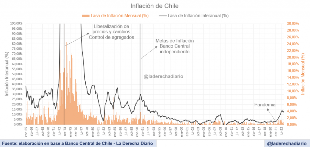 La inflación había alcanzado un pico del 87,6% en octubre de 1973, tras la caída del Gobierno de Allende y el colapso de los controles de precios, y ya había superado el 22% mensual entre agosto y septiembre de 1972. Los economistas de Chicago eliminaron los controles de precios y los controles cambiarios, y apostaron por llevar adelante una política monetaria moderna.