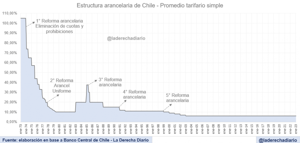 Apertura a las importaciones en Chile, entre 1973 y 2023.