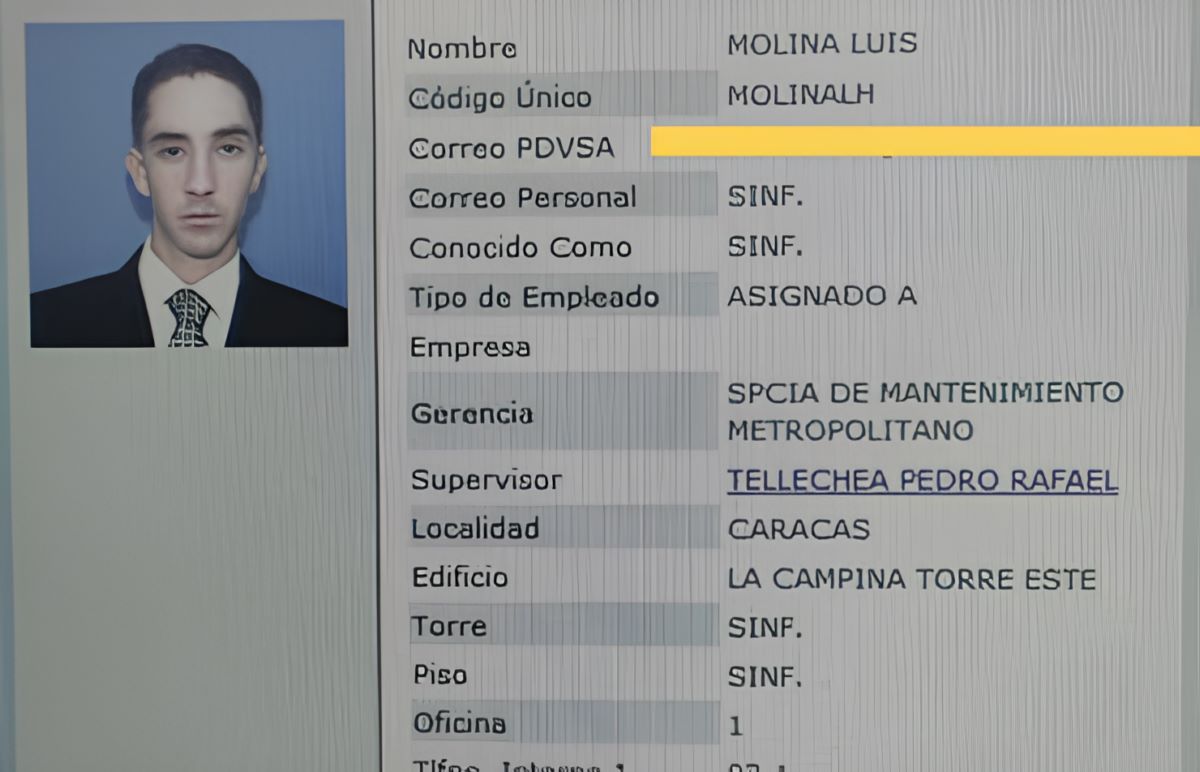 Un documento interno de PDVSA que se ha filtrado en redes sociales detalla que Luis Molina Duque ha estado vinculado a la Superintendencia de Mantenimiento Metropolitano, y bajo las directrices de Pedro Rafael Tellechea, quien actualmente ocupa la presidencia de PDVSA y el cargo de Ministro del Poder Popular de Petróleo de Venezuela.
