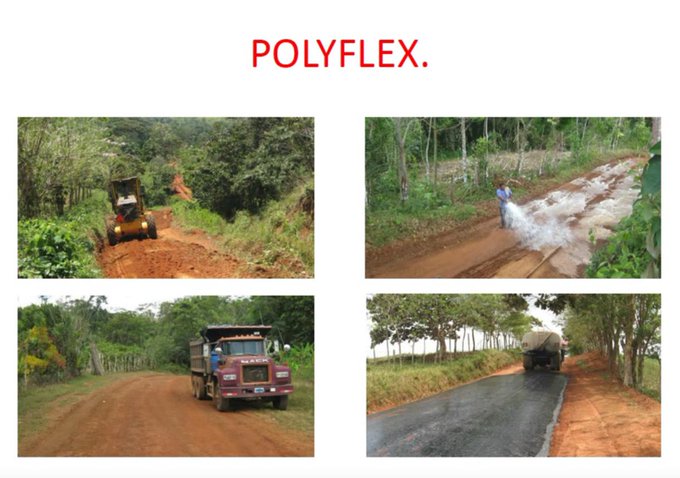 Polyflex se ha publicitado como la tecnología usada para asfaltar 50 km de carreteras agrícolas en Capacho, Táriba y otras zonas del Estado Táchira, como Peribeca.