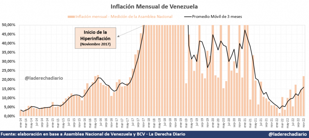 The post Rebrote inflacionario en Venezuela: Los precios subieron un 22% solo en el mes de noviembre first appeared on La Derecha Diario.