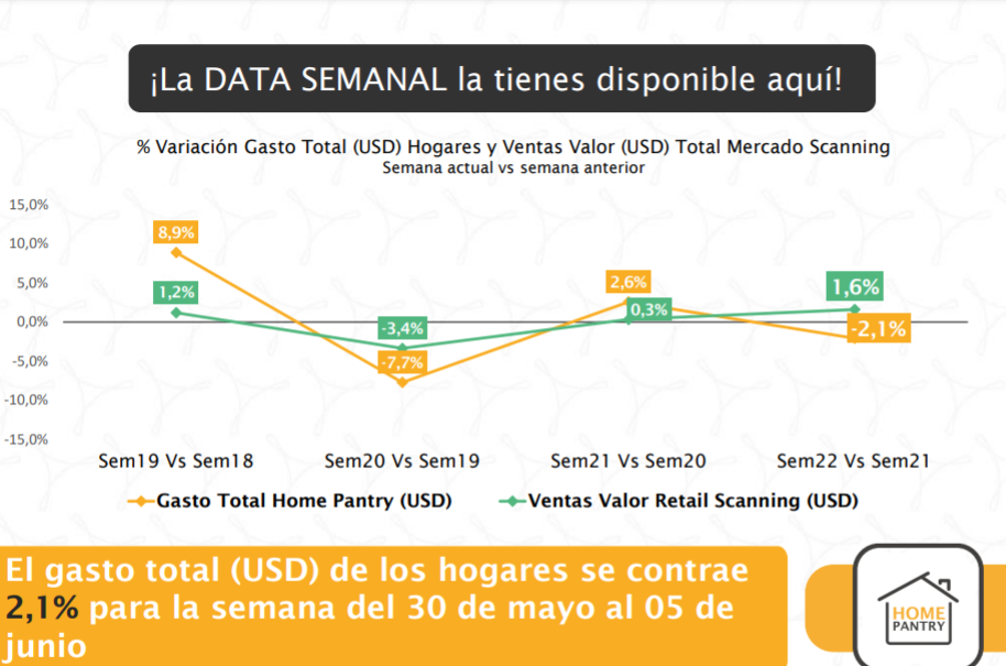 En la nueva data semanal de Atenas Grupo Consultor se pudo conocer que el gasto total en dólares de los hogares se contrajo 2,1% para la semana del 30 de mayo al 05 de junio.