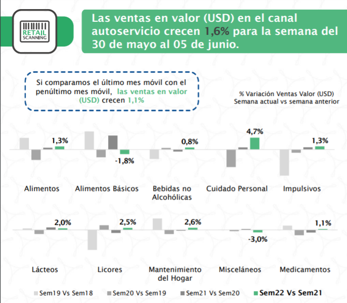Las ventas en valor en dólares en el canal autoservicio crecieron 1,6% para la semana del 30 de mayo al 05 de junio.