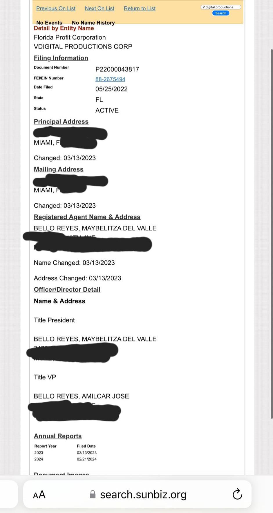 Amilcar José Bello Reyes, el hermano de la ex-aspirante a Concejal sería quien está a cargo del Medio Vdigital24, sin embargo, investigaciones revelan que dicho medio de comunicación está registrado a nombre de Maybelitza Del Valle Bello Reyes, en la ciudad de Miami, Estados Unidos.