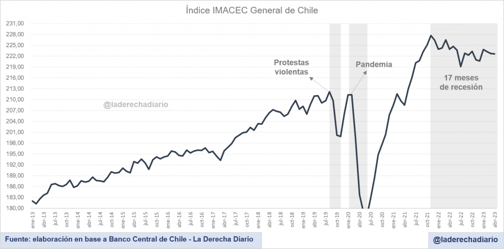 The post Sigue la caída de la economía chilena: Se desplomó un 1,1% en abril y ya acumula 17 meses de recesión first appeared on La Derecha Diario.