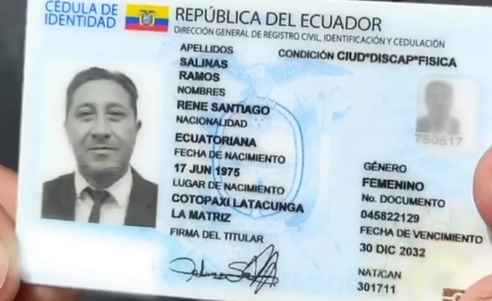 Salinas Ramos realizó el trámite de cambio de género en su cédula de identidad en el Registro Civil de Azuay, al sur del Ecuador, donde simplemente dijo que quería ser identificado como una mujer, y gracias a una reciente reforma progresista en el país, no necesitó presentar ninguna evidencia o certificado médico que demuestre su disforia de género.